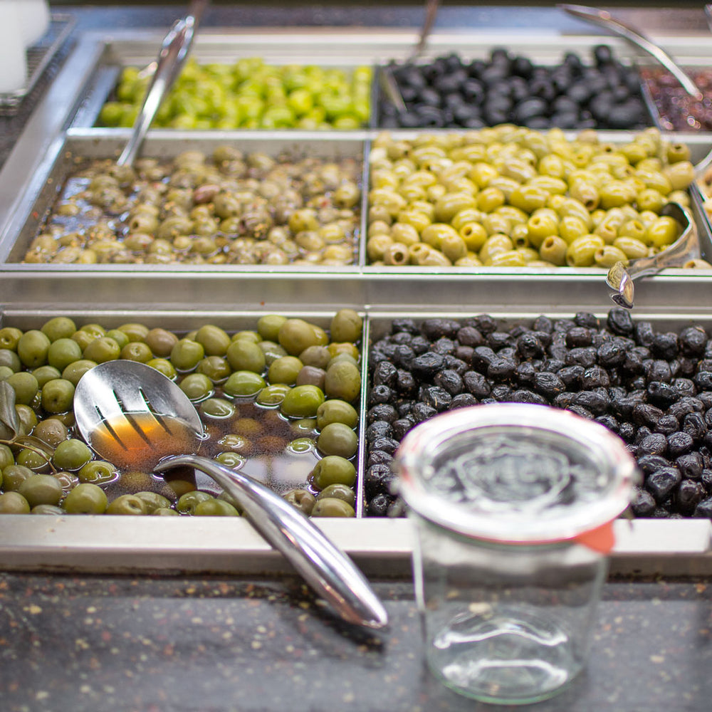 3. Olive Bar: Bon Appetite recently rounded up the 8 best things at the Whole Foods olive bar. The castelvetrano olives are my personal favorite—they’re buttery, tender and perfect for snacking. The olive bar also has marinated gigante beans and mushrooms, grilled artichoke and cornichon. Shopping plastic-free at the olive bar is easy—you just tare your unfilled jar and fill it up. No need to write down a PLU (price look up) like you do in the bulk aisle. Whole Foods has one set price for the olive bar.