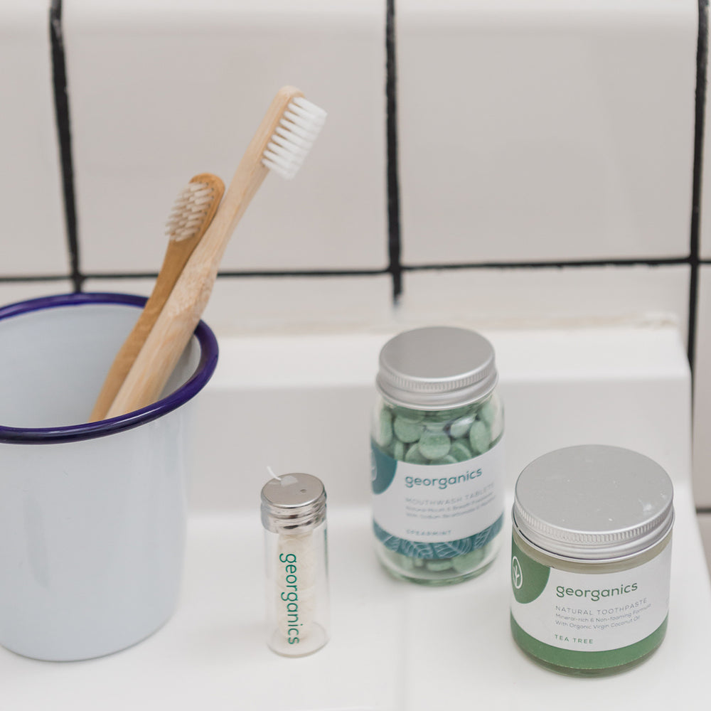 Have you ever wondered where your favorite Elmo toothbrush from childhood ended up, or all those freebies you picked up from dentist visits over the years? The bad news—they likely all still exist somewhere in a landfill (unless they were incinerated). When you add up all of the oral hygiene products you go through a year (3-4 toothbrushes, 122 yards of floss, half a dozen toothpaste tubes and mouthwash bottles), and multiply that number by how many years you’ve been brushing your pearly whites, it adds up to...a lot. The good news is that there are plastic-free alternatives for each step of your dental routine that will keep your teeth and gums healthy and reduce waste.