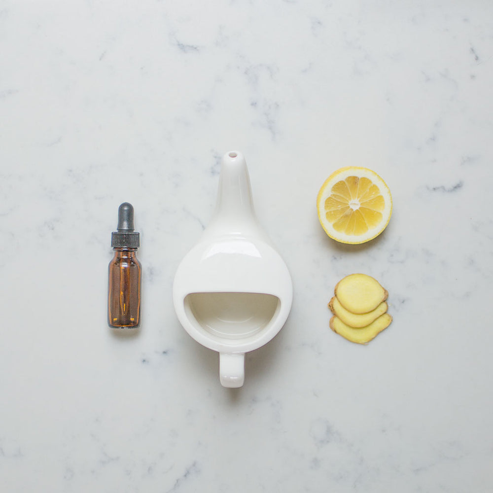 - Flush mucus with a neti pot: I hate nothing more than trying to go to sleep when I’m sick and not being able breath easily out of my nose. My solution: the neti pot. Pouring warm salt water through your nose may sound unappealing, but it really helps flush mucus out of your nasal passages so you can finally breathe! It also rinses away dust, pollen and other irritants and supports a healthy upper respiratory system. I also like it because it reduces sinus pressure and headaches that can be common when you’re congested. You can pick up a ceramic neti pot at most health food stores.