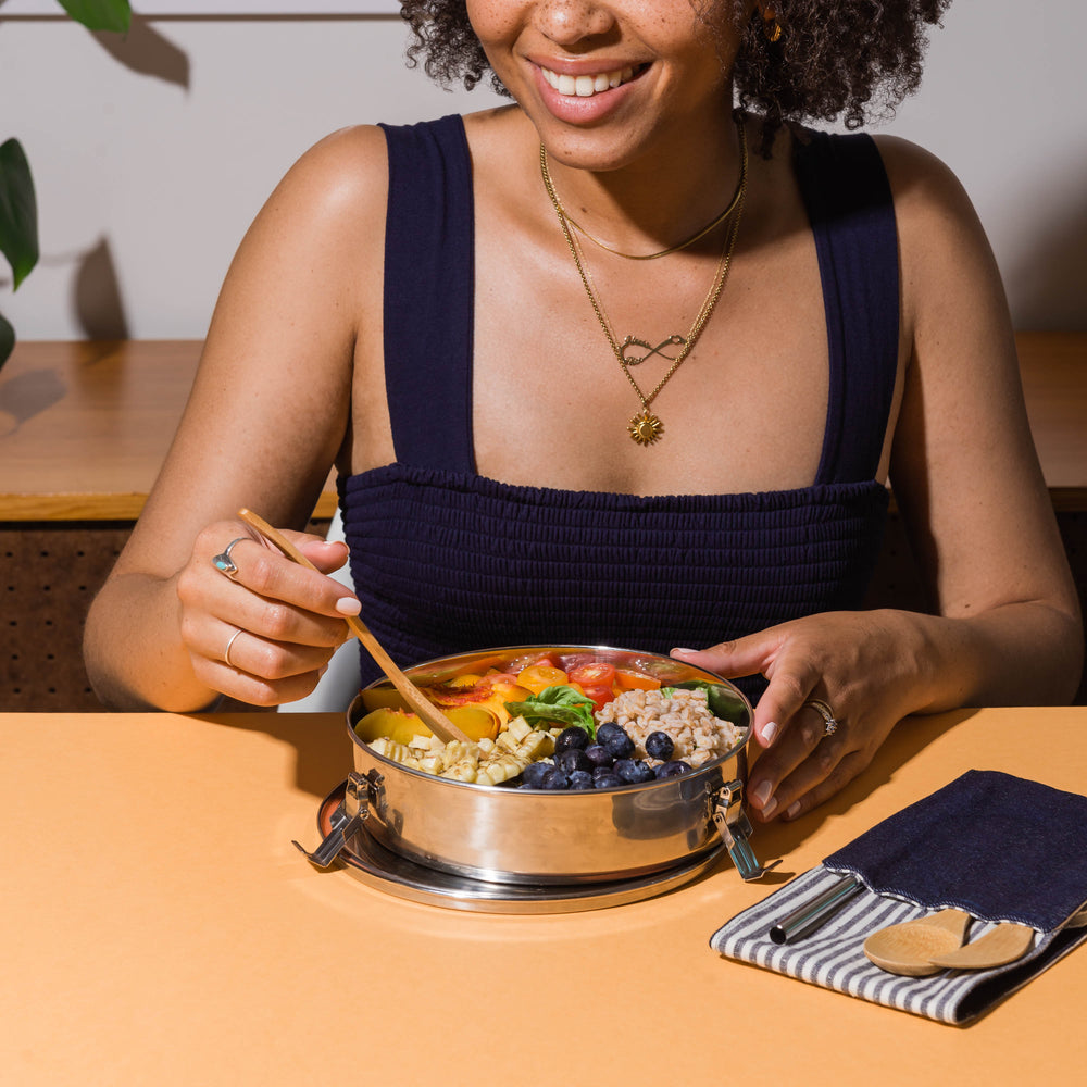 3. Skip Time-Savers. If you can, skip the pre-cubed, spiralized and shredded produce that comes in non-recyclable plastic bags and clamshells. Buy a whole butternut squash, pomegranate and bunches of spinach and kale. Prepping produce from scratch does take more effort and time than buying the bagged varieties, but it also tastes better (no preservatives) and you can avoid most packaging waste. That said, if bagged produce is your only option or it’s more affordable, do what works best for you. You may want to consider transferring the produce that comes in bags and clamshells into a cloth storage bag or glass container at home. Produce prefers breathable cotton to plastic to stay fresh and crisp. Avoid discovering a sad and slimy bag of vegetables by storing them properly.