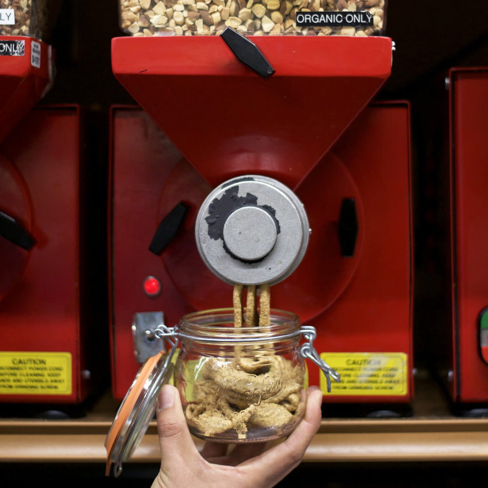 With a surge of confidence, I strode into the bulk section to stock up on my favorite: fresh ground almond butter. It’s made with just one ingredient, roasted almonds, with no added salt, oil or sugar. I have an addiction. Before I was zero waste, I used to go through a whole plastic tub of Whole Foods almond butter a week. One plastic tub a week! I cannot tell you how excited I was to fill up my own Le Parfait jar. I felt très élégant.