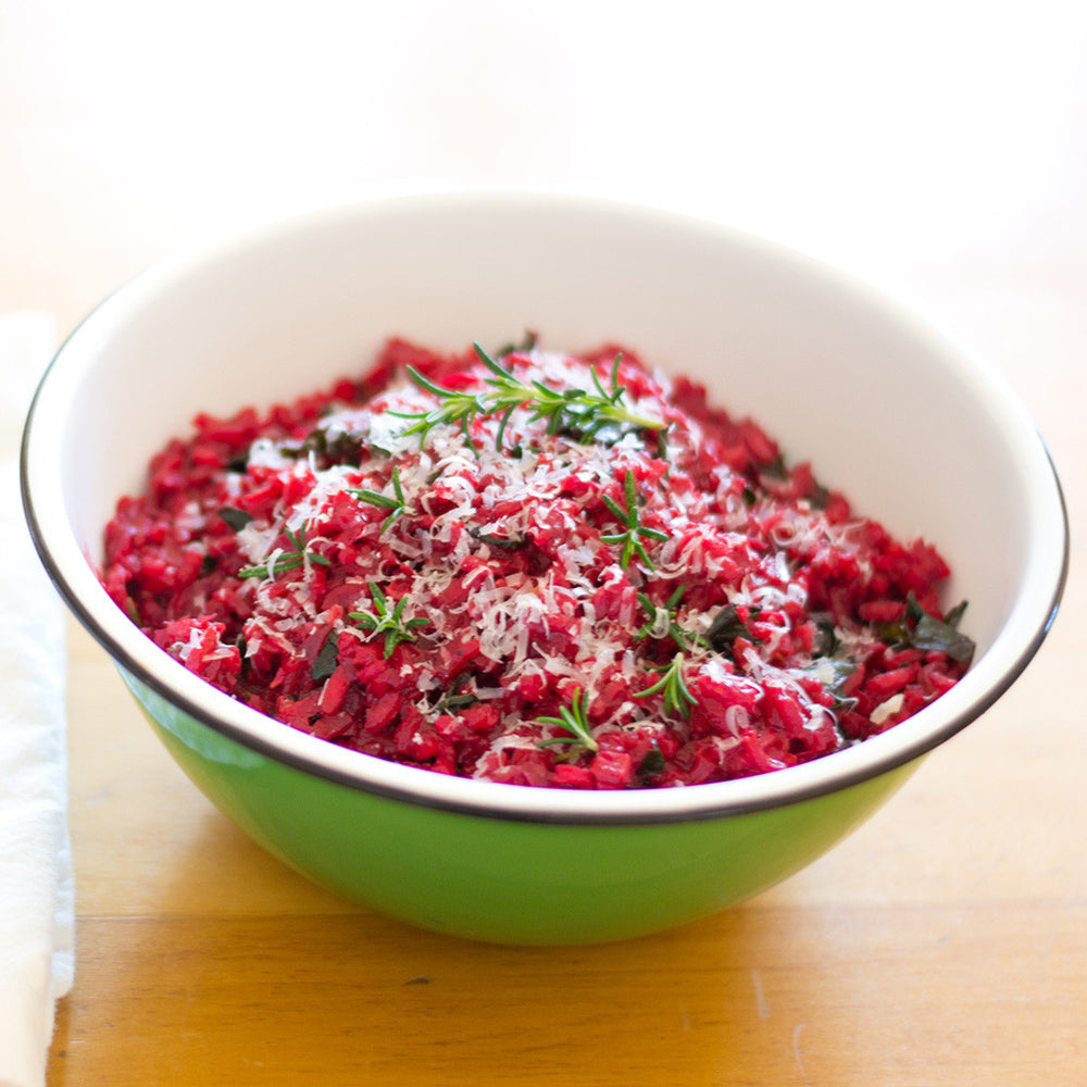 There’s been an abundance of beets at our farmers’ market and we’ve been stocking up. They have loads of health boosting benefits – high in vitamin C, fiber and essential minerals (including potassium and manganese). Beyond its health rewards, this beet risotto has become a go-to when I’m cooking for a loved one – it’s savory and earthy with a subtle sweetness and its crimson hue is pretty much the color of love. In fact, the ancient Romans considered beets to be an aphrodisiac – romantic dinner, anyone?